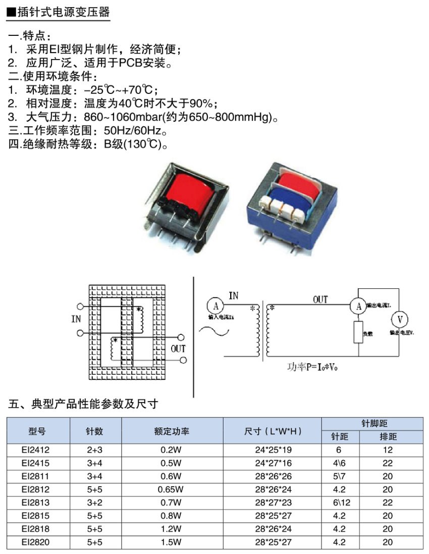 > 插针式电源变压器